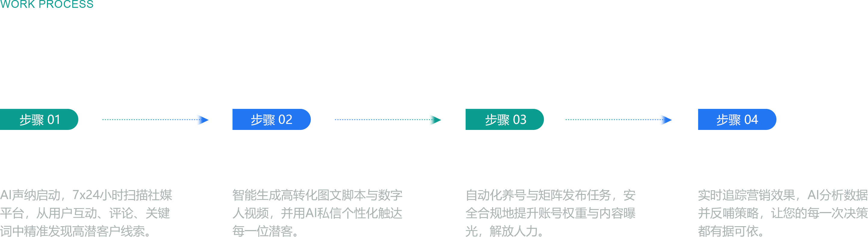 我们利用AI技术,在纷繁的社媒流量中,为您精准识别、触达并转化高