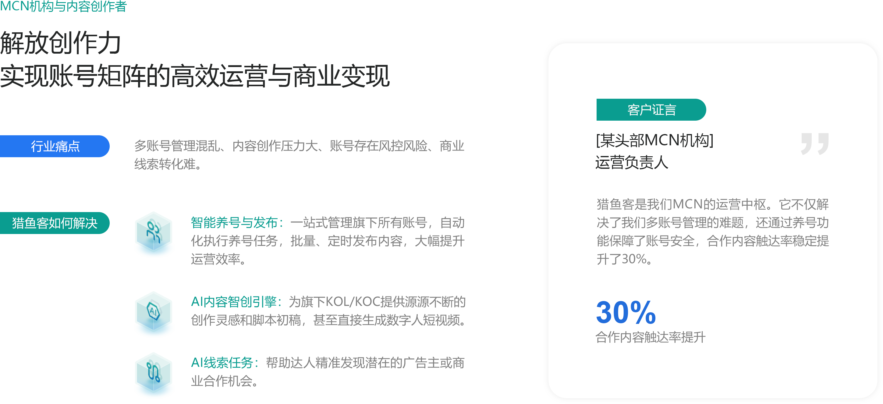 无论您身处哪个赛道,猎鱼客都能提供针对性的解决方案。